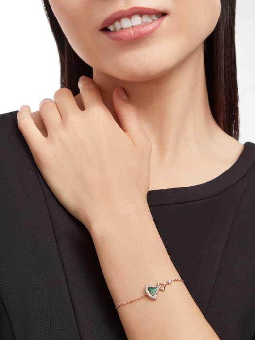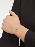 Divas’ Dream series 18K rose gold bracelet, exquisite interpretation of Italian style, with a unique Roman spirit to pay tribute to the charm of women. Inspired by feminine elegance, the collection features classic fan patterns in a cutout design and malachite with a dense diamond edge: unique iconic elements combined with mosaics from the Great Baths of Caracalla in Rome celebrate timeless beauty.