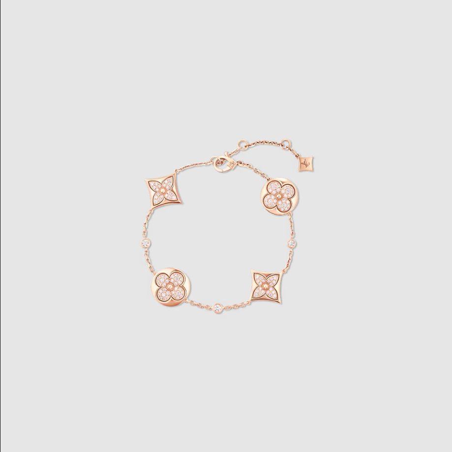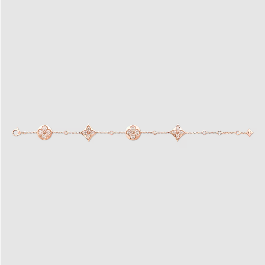 Color Blossom BB celebrates the Monogram Flower, created in 1896 by Georges-Louis Vuitton. This bracelet the sun and star motifs, all lavishly inlaid with shining diamond pavé and cast from 18-kt gold. A precious piece to stack, mix or match with other models from the collection.