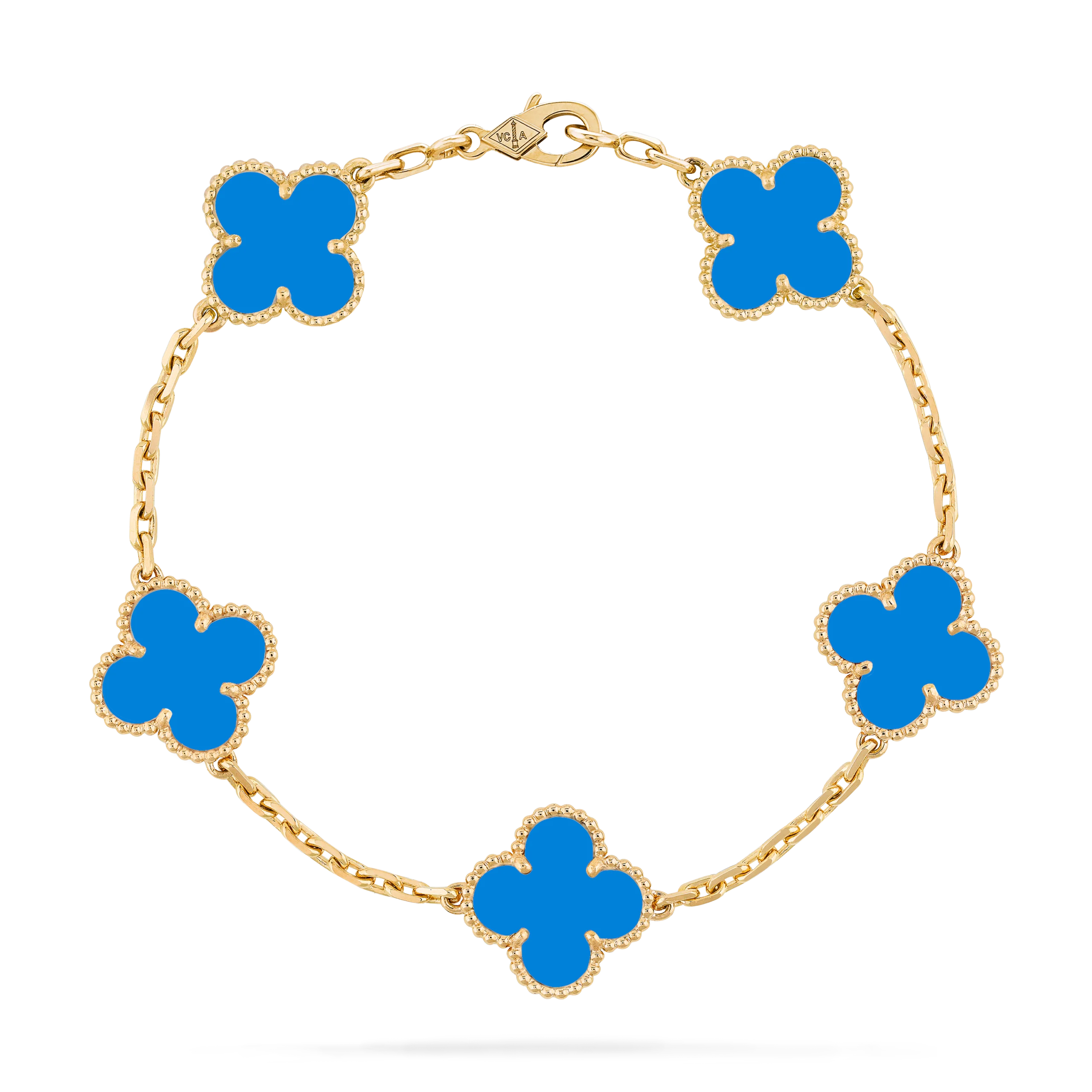 Vintage Alhambra bracelet, 5 motifs 18K yellow gold, Agate